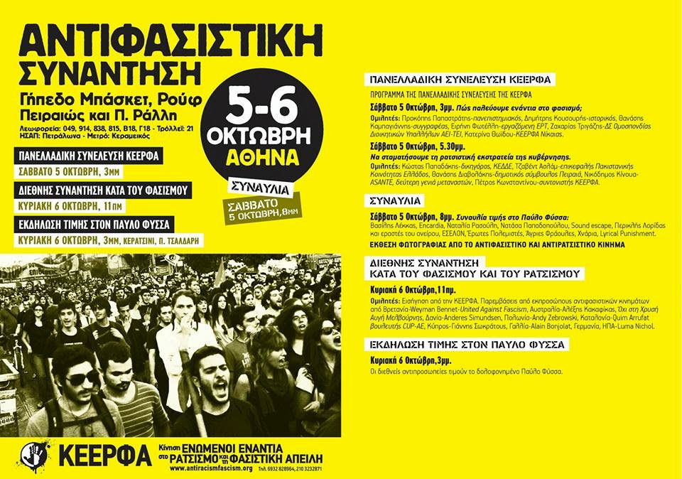 Στην αντιφασιστική κίνηση της ΚΕΕΡΦΑ,που θα πραγματοποιηθεί στις 5 και 6 Οκτώβρη,θα συμμετέχουν οι Lyrical Punishment. Η συνάντηση θα γίνει στο γήπεδο μπάσκετ Ρούφ (Πειραιώς και Π.Ράλλη). H συναυλία στην οποία θα πάρει μέρος το συγκρότημα,είναι προγραμματισμένη για το Σάββατο (5/10).